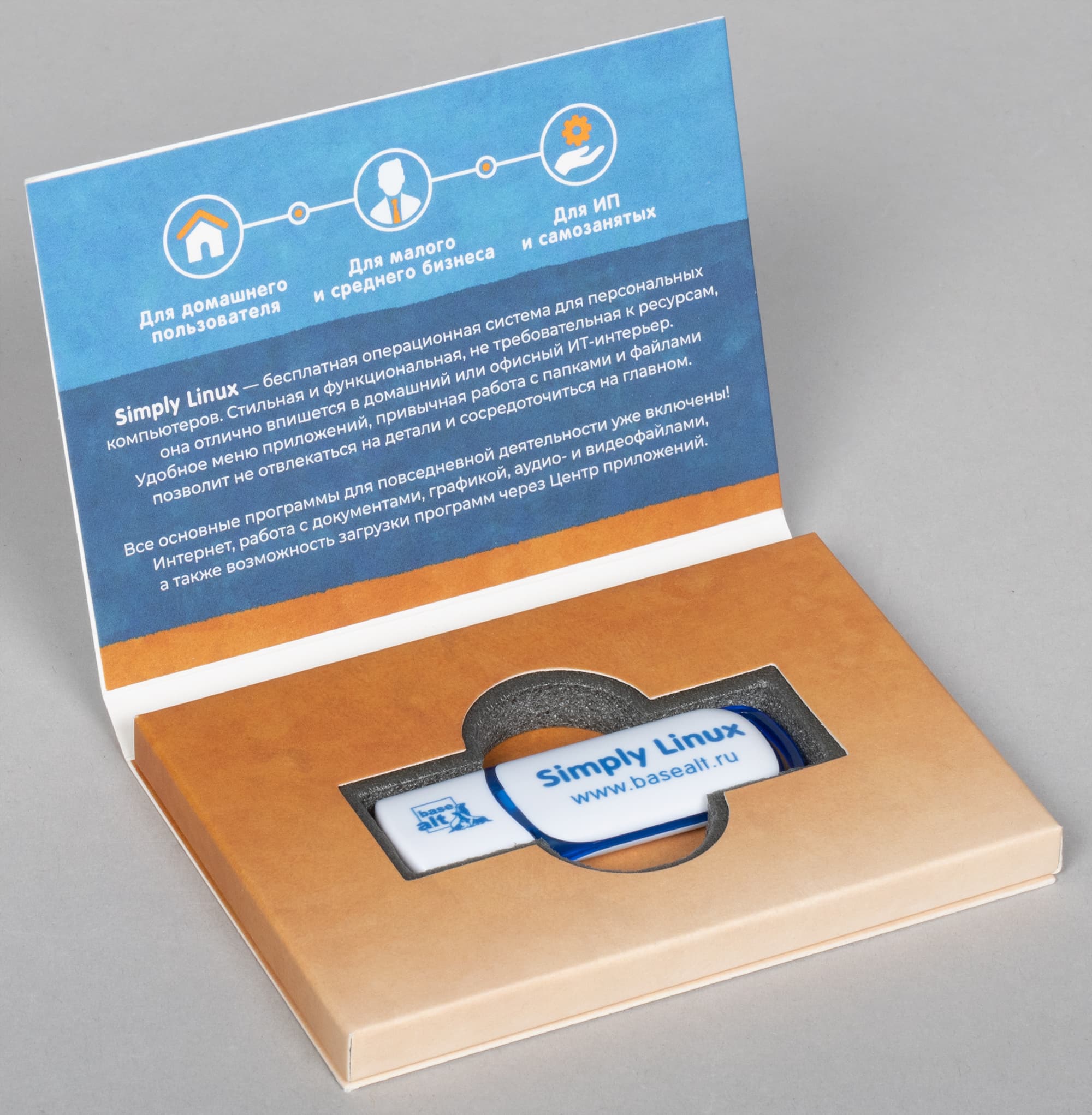 На нем имеются сразу две комплекта операционной системы: «живой» образ (для запуска с накопителя при начальном старте компьютера) и установочный дистрибутив. Первый позволяет запускать Simply Linux с флешки и работать без ее установки на накопитель (исходная система не будет затронута). Такой подход удобен на начальном этапе ознакомления, а также при тестировании аппаратных компонентов и периферии на предмет их совместимости. Приобрести тиражную версию можно в разных магазинах, например в «Ситилинке».