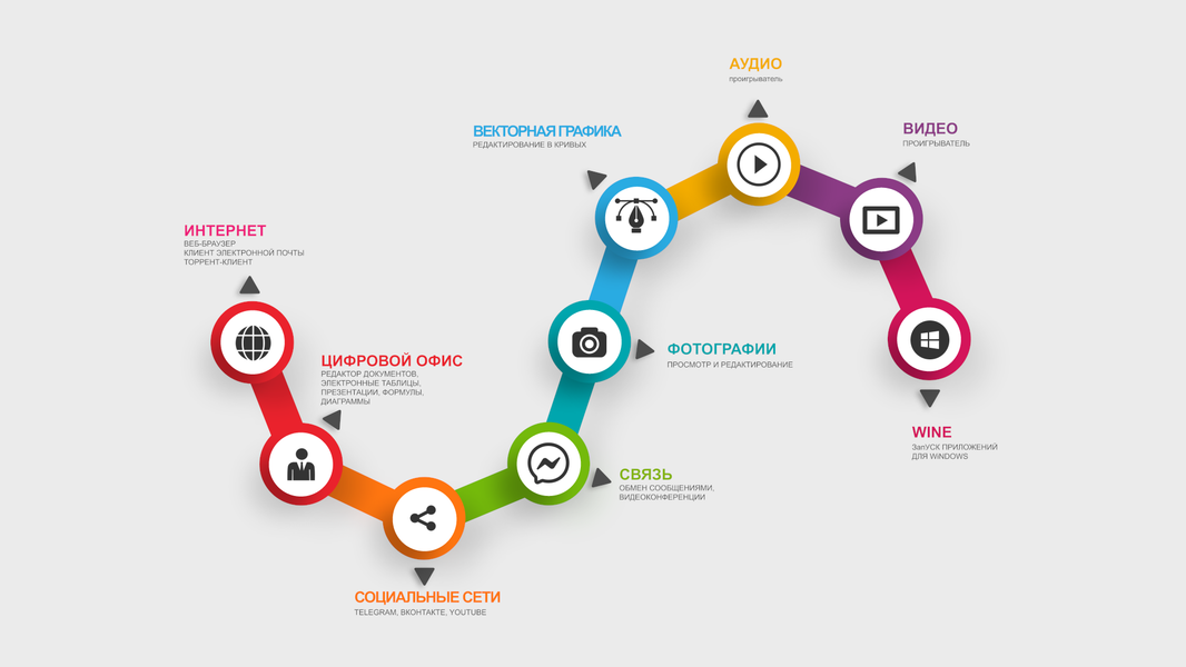 - Комплект офисных приложений, содержащий редактор документов, управление электронными таблицами и деловыми презентациями (https://www.libreoffice.org/).