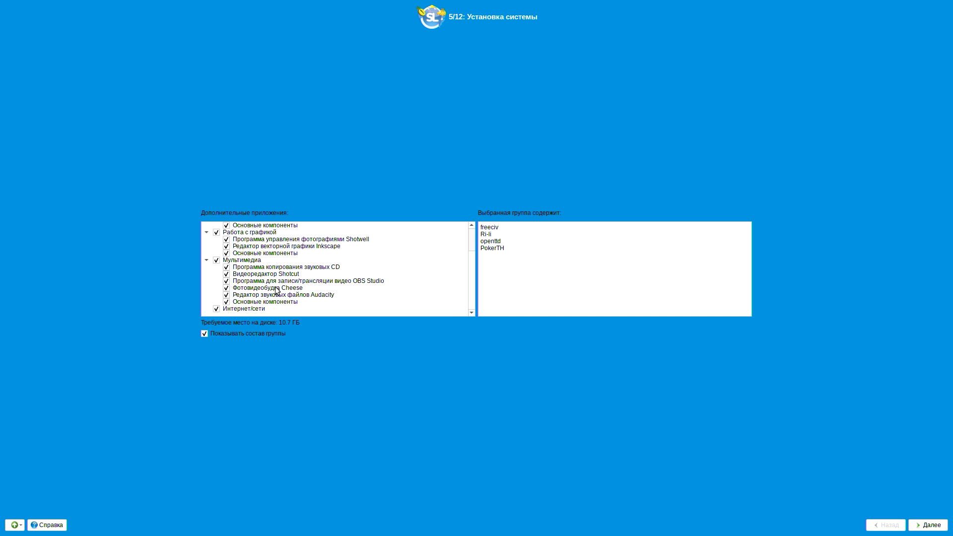 Пометим, что будем устанавливать все доступные в дистрибутиве приложения, тем более что их не очень много.