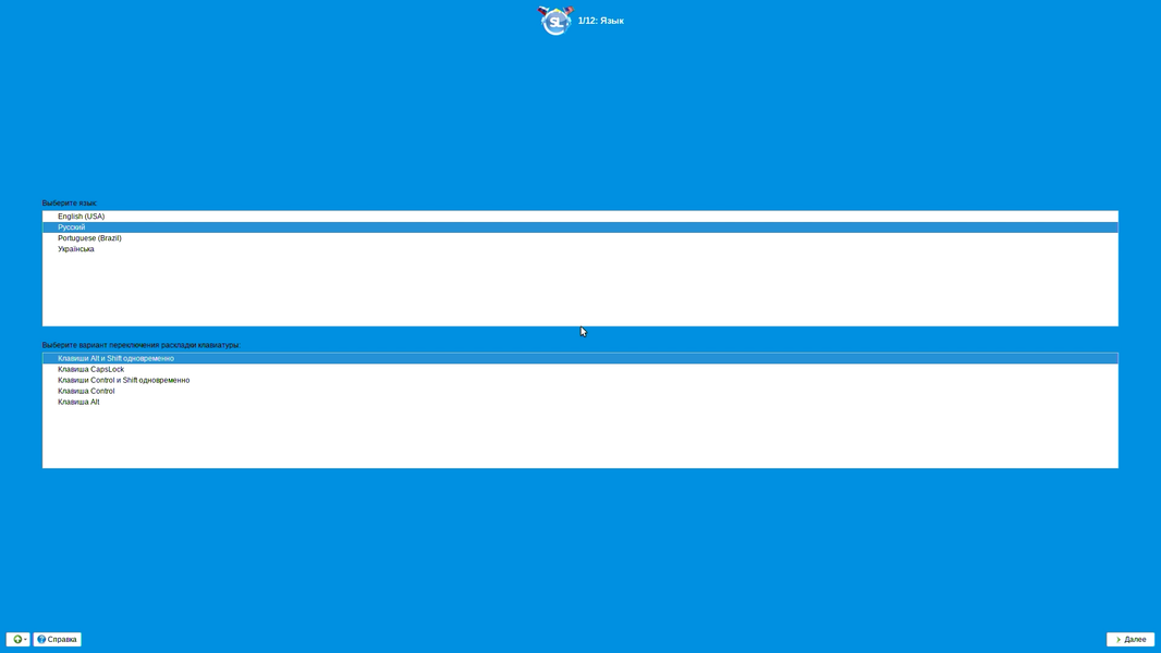Выбираем язык и клавиши его переключения.