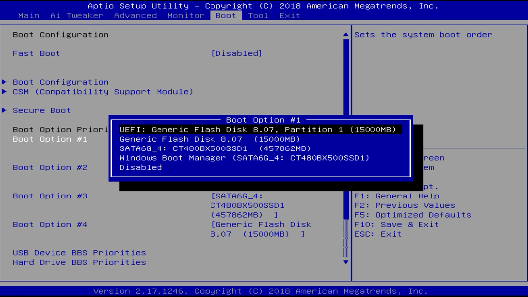 Для загрузки выбираем флешку и сохраняем установки.