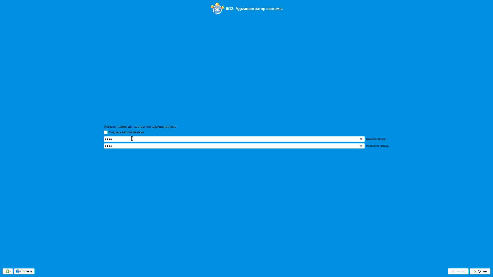 Задаем пароль администратора и системы.