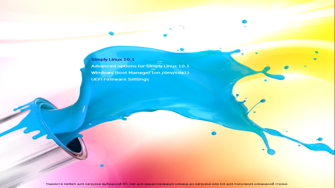 В меню загрузчика выбираем установку Simply Linux и нажимаем Enter.