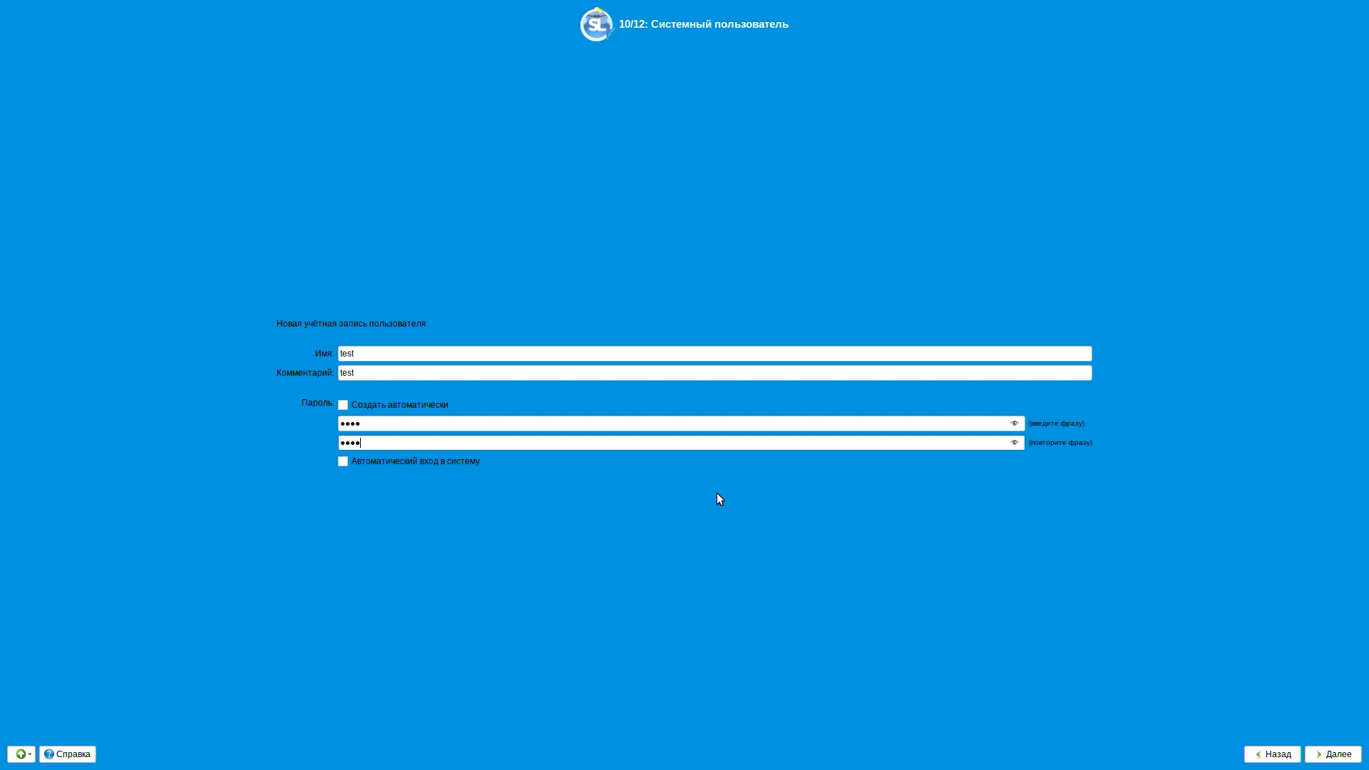 Первым делом Simply Linux запрашивает имя пользователя и пароль.