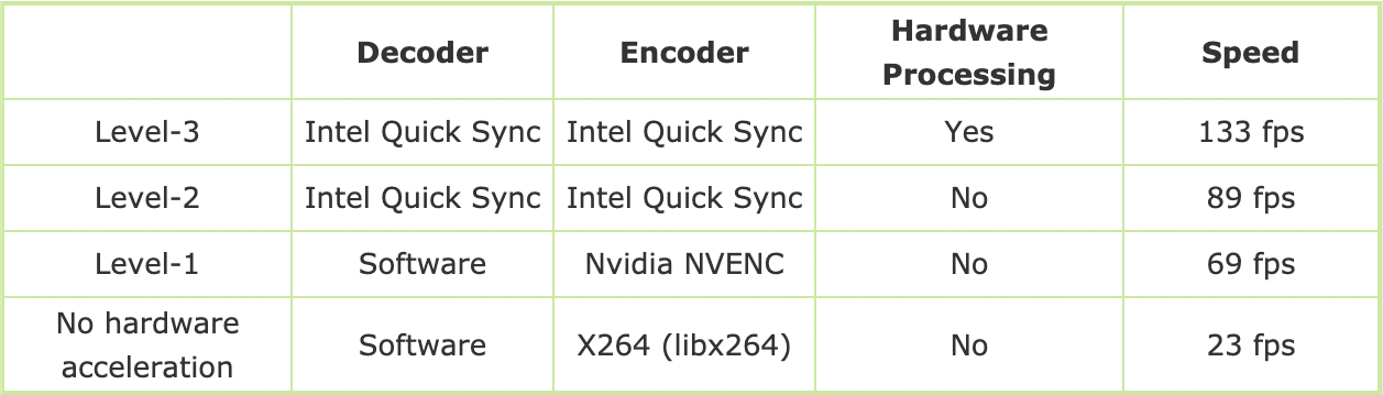 Во-вторых, для декодирования, кодирования и процессинга задействуются технологии Intel Quick Sync Video и Nvidia CUDA/NVEnc (при наличии в системе компонентов с их поддержкой), что заметно ускоряет конвертацию видео.