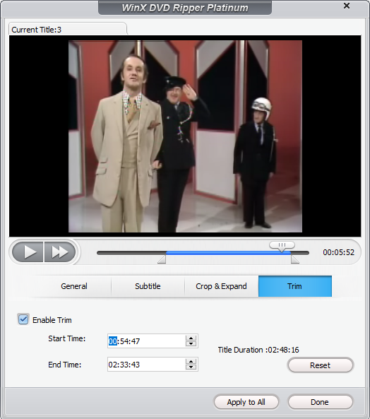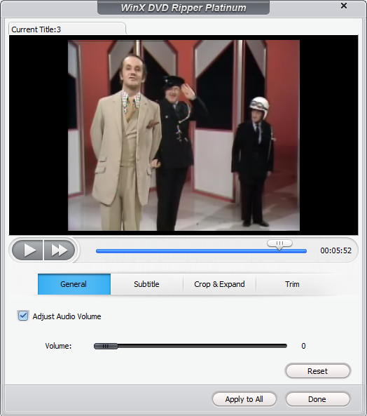 В-третьих, самое ценное, WinX DVD Ripper обходит все существующие методы защиты DVD от копирования, включая редкий в наших краях 99 Title, созданный Disney — большинство современных грабберов, включая бесплатные программы с открытым исходным кодом, до сих пор не могут корректно перекодировать такие диски.