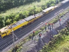 Рабочие ведут ремонтные работы железнодорожного полотна
