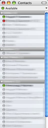 Adium, как показано на скриншоте, поддерживает внушительный список протоколов Instant Messaging: AOL Instant Messenger, Jabber, MSN Messenger, Yahoo! Messenger, .Mac, Bonjour, Gadu-Gadu, Google Talk, ICQ, Lotus Sametime, Novell GroupVise, Yahoo! Japan, Zephyr. Как и положено хорошему клиенту, Adium позволяет одновременно использовать несколько учетных записей.