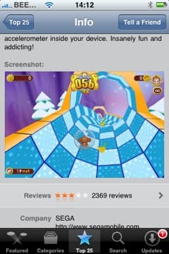 Программы отсортированы по категориям: Books, Business, Education, Entertainment, Finance, Games, Health & Fitness, Lifestyle, Music, Navigation, News, Photography, Productivity, Reference, Social Networking, Sports, Travel, Utilities, Weather. Присутствуют привычные для iTunes Store рейтинги наиболее популярных программ (причем, есть рейтинг наиболее популярных платных и бесплатных программ).