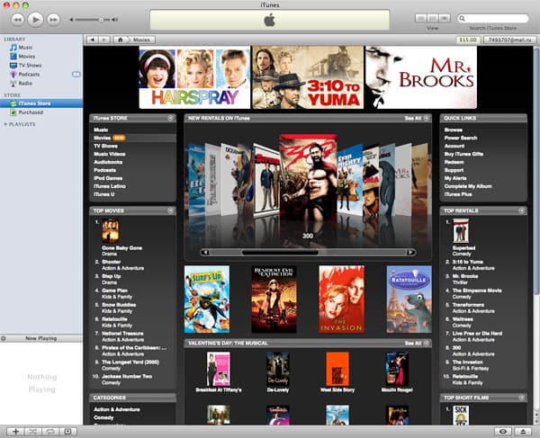 Что же представляет из себя цифровой видеопрокат по версии Apple? Пользователь выбирает в ассортименте понравившийся фильм и арендует его — с его счета списывается стоимость аренды фильма и сразу же начинается его закачка. Вскоре после начала закачки (не дожидаясь ее окончания) он получает возможность сразу же начать просмотр. Сделать это он может и позднее — для того, чтобы начать просмотр фильма, отводится 30 дней. После начала просмотра на окончание отводится 24 часа, после чего фильм автоматически удаляется. За эти 24 часа вы получаете возможность просматривать фильм несколько раз. Это весьма неплохая модель — вы можете перед отпуском, например, арендовать десяток фильмов и уже потом решить, когда вы начнете их просмотр.