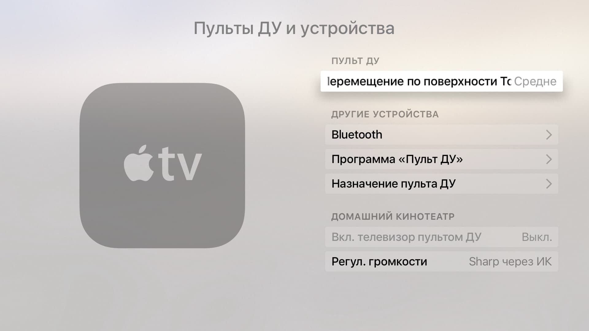 На этой же странице настраивается взаимодействие с техникой по HDMI и еще одна интересная функция — перенос управления громкостью на другие устройства. В этом режиме вы сначала обучаете плеер двум сигналам штатного пульта вашего телевизора или ресивера, а потом при нажатии соответствующих аппаратных кнопок на пульте Apple, он через свой ИК-передатчик управляет техникой.