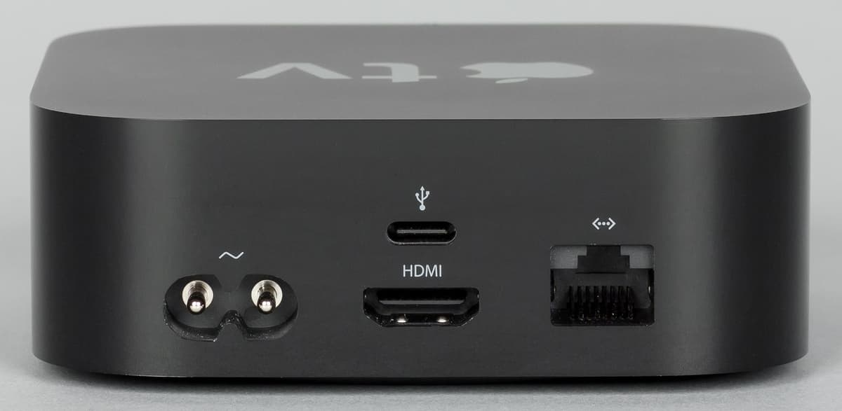 Для начала работы с плеером достаточно подключить кабель HDMI к телевизору или ресиверу, а также обеспечить питание. Напомним, что плееры Apple TV имеют встроенный блок питания и обычный тонкий кабель до розетки, что позволяет свести к минимуму число внешних элементов. Желательно также подключить проводную сеть, поскольку Wi-Fi часто бывает сложно назвать хорошо подходящим для видеотрансляций в высоком разрешении. Время загрузки приставки составляет менее 30 секунд.