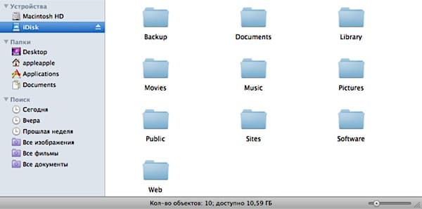 Интерфейс файлового хранилища iDisk практически не изменился по сравнению с тем, что мы видели год назад. Однако, по моим ощущениям, iDisk стал работать несколько шустрее.