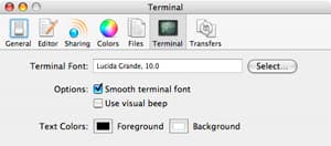 В Coda присутствует полноценный terminal с возможностью подключения к серверу по SSH. Он также поддается гибкой визуальной настройке — вы можете настроить шрифт, цвет букв и фона.