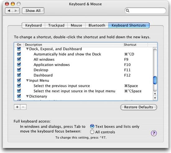 Несмотря на то, что юзабилити в Mac OS X на высоте (скажем, для переключения между открытыми окнами и программами достаточно нажать на соответствующую иконку в Dock, либо использовать Expose: F9, F10), многие пользователи предпочитают использовать клавиатурные сокращения для часто повторяющихся операций.