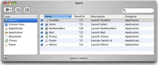 Но вам поможет небольшая и совершенно бесплатная программа Spark, созданная французским программистом Jean-Daniel Dupas. После ее открытия, в левой панели двойным щелчком выберите категорию клавиатурного сокращения и заполните простую форму с выбором комбинации клавиш и самим действием (например, открытием той или иной программы). После установки необходимых сокращений, вы можете смело закрывать Spark — они продолжат работать.