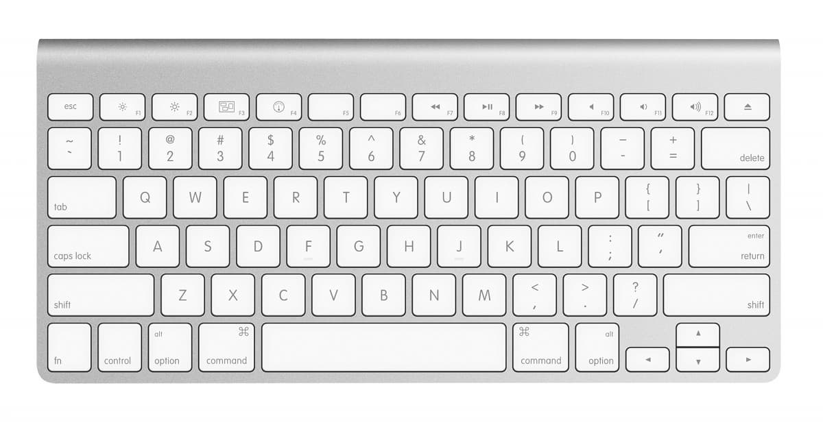 Не забудем и про периферию. Материалы традиционны — алюминий и белый пластик. Компактная беспроводная клавиатура удивляет своей простотой и удобством. Питается она от пары батареек формата AA. Как и многие клавиатуры на ноутбуках, ее верхний ряд имеет второй набор функций, в частности по управлению медиаплеером и вызову некоторых программ.