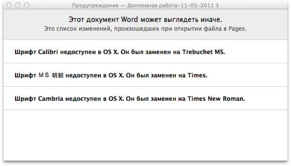 В свою очередь, документы, созданные в MS Word или OpenOffice, будут выглядеть не совсем корректно в Pages. Например, какие-то объекты могут переехать на соседнюю страницу, то есть, скажем, титульный лист научной работы вдруг превратится в два листа; а оглавление потеряет возможность перехода на соответствующие разделы по клику мышки (когда то же оглавление мы открываем в OpenOffice, появляется подсказка, что надо зажать Cmd и нажать мышкой на нужный подзаголовок; в Pages такой подсказки не появляется).