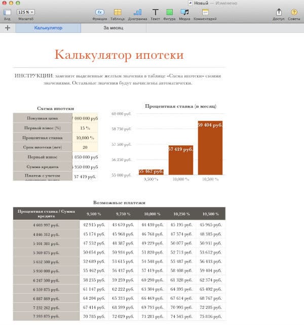 Например, есть очень простой шаблон для расчета платежей по ипотечному кредиту.