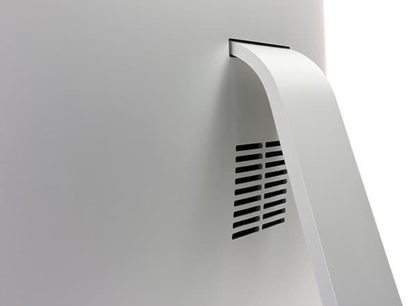 Итак, если говорить о дизайне, то перед нами стильный, очень тонкий моноблок. Грани корпуса имеют толщину всего 5 мм. К месту крепления подставки корпус плавно утолщается.