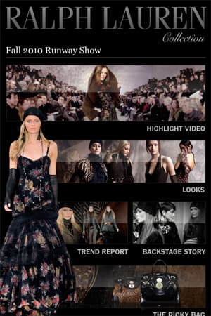Более серьезно к делу подошли разработчики приложения Ralph Lauren. Во-первых, имеется оптимизация под iPhone 4 (как в интерфейсе, так и в самих фотографиях — их разрешение 960х640), во-вторых, глаз радует более красивое, чем у Chanel, меню, в-третьих — присутствуют миниатюры всех видов коллекции, что облегчает навигацию.