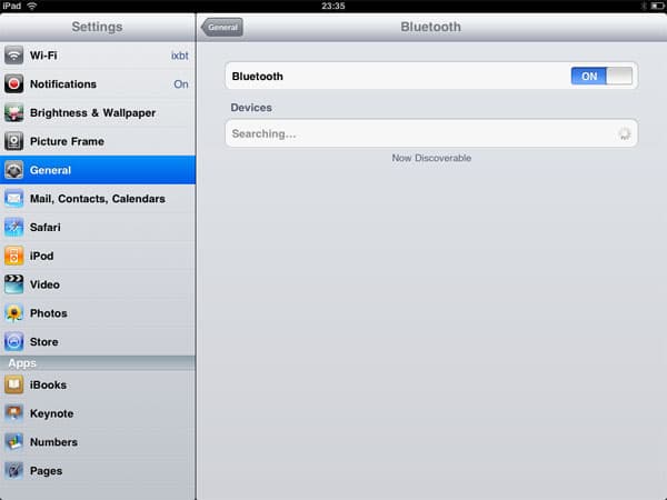 Впрочем, язык не самая большая проблема iWork на iPad (да и для многих не проблема вовсе). Куда больше напрягает ситуация с загрузкой файлов в устройство. Как мы помним, у iPad нет никаких разъемов для подключения внешних носителей. Следовательно, ни флешку, ни SD-карту использовать для переноса документов не получится. Нельзя перекинуть файл и по Bluetooth. Хотя физически он в iPad есть (надо только включить его в Настройках), находящийся рядом MacBook (со включенным Bluetooth) iPad «не видит».