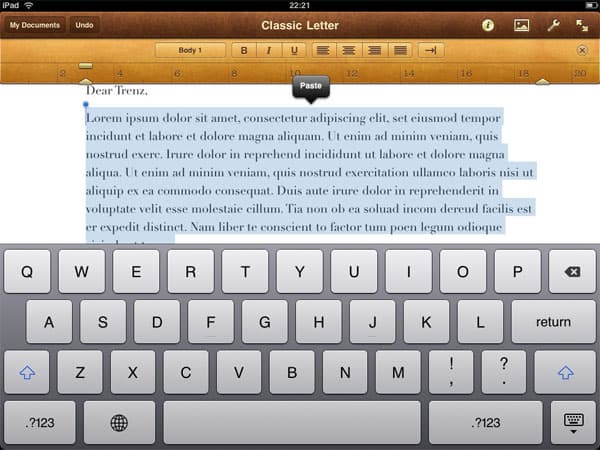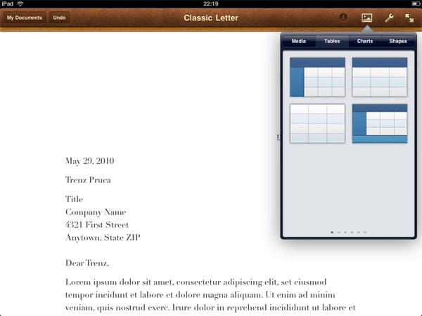 Самое обидное, что создавать тексты в Pages на iPad на самом деле гораздо приятнее, чем я думал. Да, отсутствие физической клавиатуры не позволяет печатать вслепую, а небольшой экран (точнее, та его часть, которая не загораживается клавиатурой) не дает возможности охватить взглядом хотя бы два абзаца. Однако, нарисовать таблицу на iPad куда проще, чем в том же Pages на Mac OS X, не говоря уже о работе с иллюстрациями (которые вы можете передвигать пальцами, растягивать, переворачивать и т. п.).