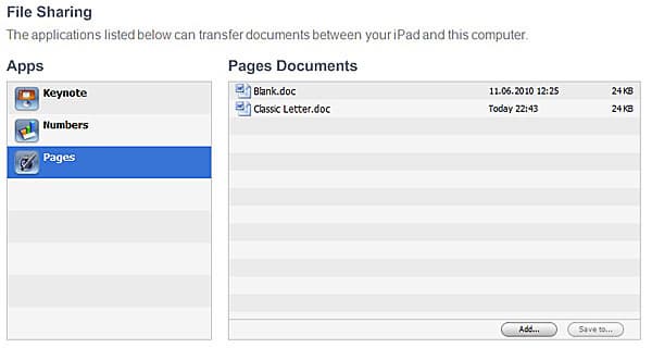 Итак, для загрузки файла на iPad через iTunes необходимо подключить устройство к компьютеру, открыть его в iTunes, выбрать закладку Apps, промотать экран вниз до категории File Sharing, выбрать среди приложений нужное (например, Pages) и добавить (то есть загрузить) нужный вам файл. Не самый очевидный порядок действий, верно? Если уж надо действовать через iTunes, то почему бы там не создать отдельную закладку Documents?