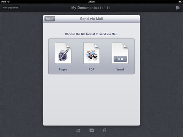 Таким образом, остается два способа отправить файл на iPad: послать его в качестве вложения по e-mail или воспользоваться iTunes. Второй способ поначалу не приходит в голову, но о нем можно узнать из удобной онлайн-справки по Pages, которая есть на сайте Apple.