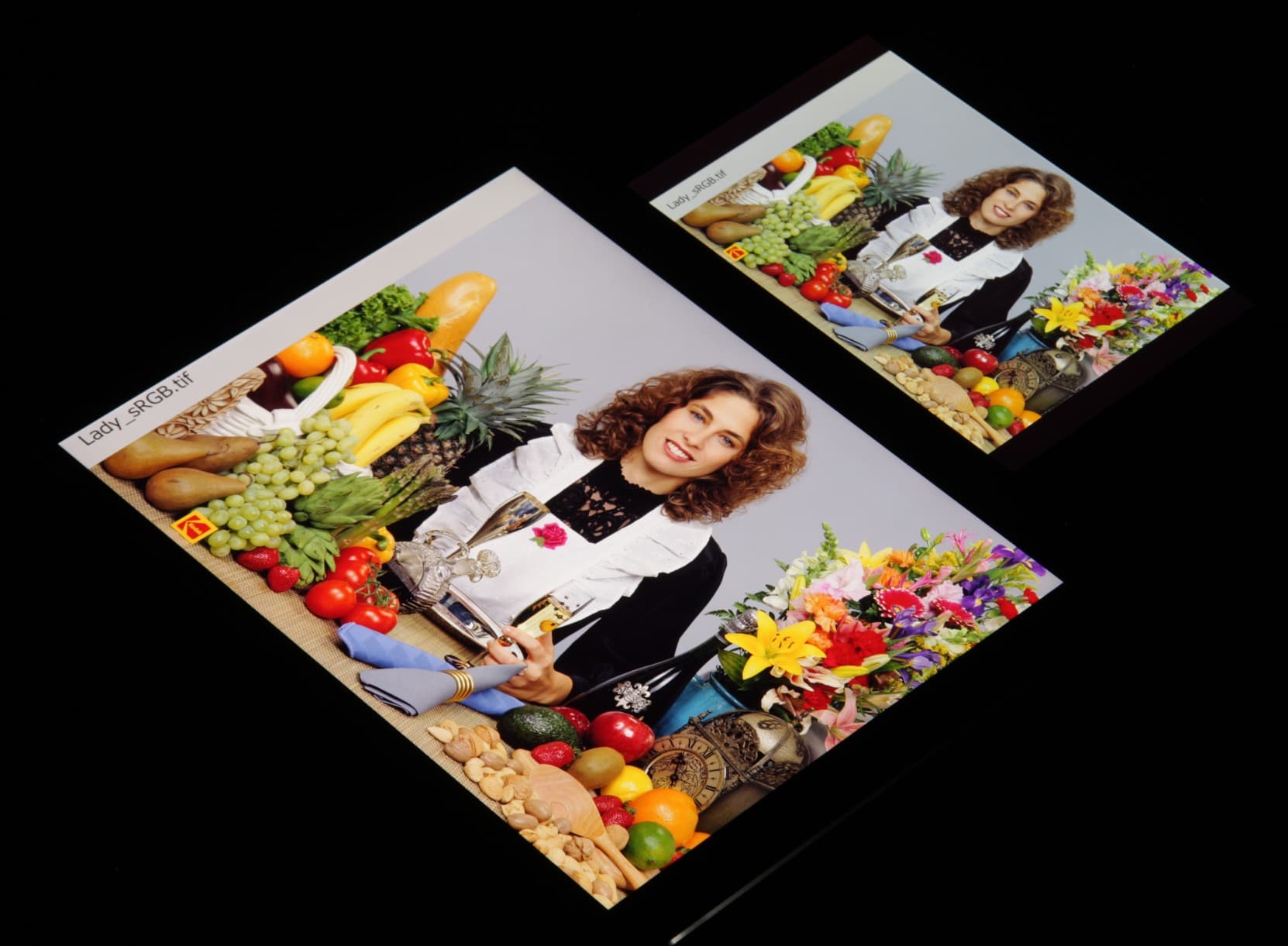 Цветовой баланс немного различается, насыщенность цветов в норме. Напомним, что фотография не может служить надежным источником сведений о качестве цветопередачи и приводится только для условной наглядной иллюстрации. В данном случае (видимо, из-за особенностей спектра излучения экрана) цветовой баланс на фотографиях экрана iPad Pro 10,5″ несколько отличается от того, что видно глазом и определяется спектрофотометром.