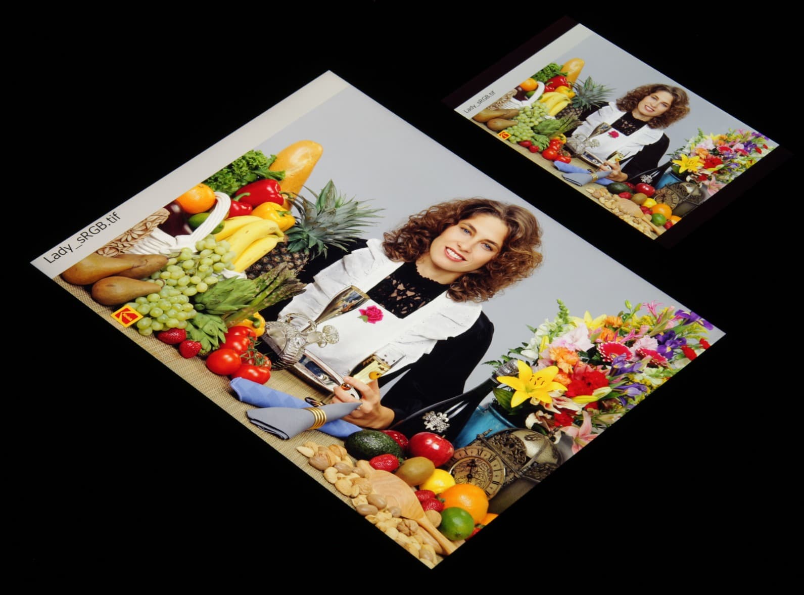 Это относится к тем изображениям, в которых прописан профиль sRGB или не прописано вообще никакого профиля. Однако родным для топовых современных устройств от Apple (как минимум для iPhone 7 и iPhone 7 Plus, iPad Pro 9.7, MacBook Pro и т.д.) является цветовое пространство Display P3 с немного более насыщенными зеленым и красным цветами. Пространство Display P3 основано на SMPTE DCI-P3, но имеет точку белого D65 и гамма-кривую с показателем примерно 2,2. Кроме того, производитель заявляет, что начиная с iOS 9.3 на системном уровне поддерживается управление цветом, это облегчает приложениям под iOS правильно выводить на экран изображения с прописанным цветовым профилем. Действительно, дополнив тестовые изображения (файлы JPG и PNG) профилем Display P3, мы получили цветовой охват, шире sRGB (вывод в Safari):