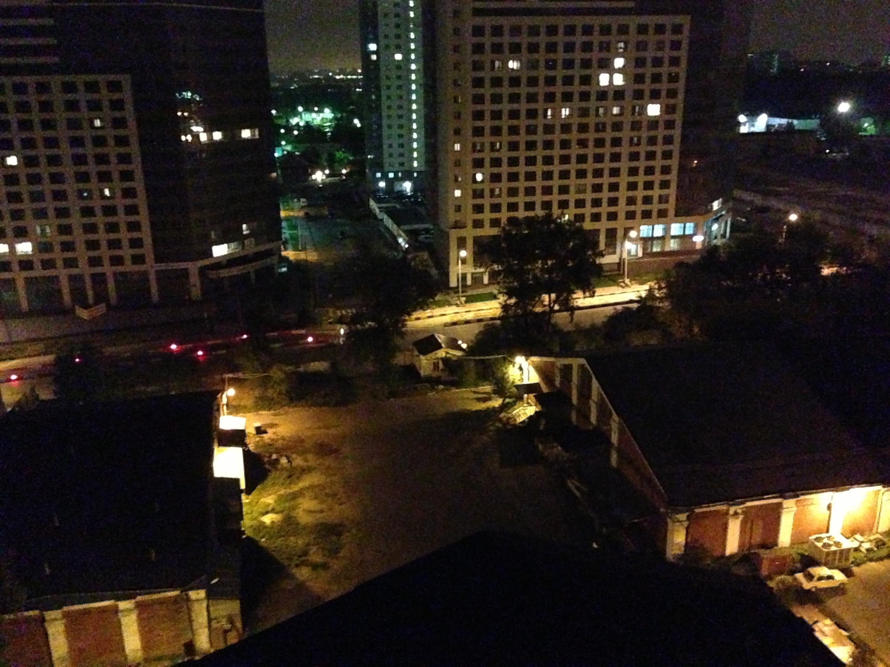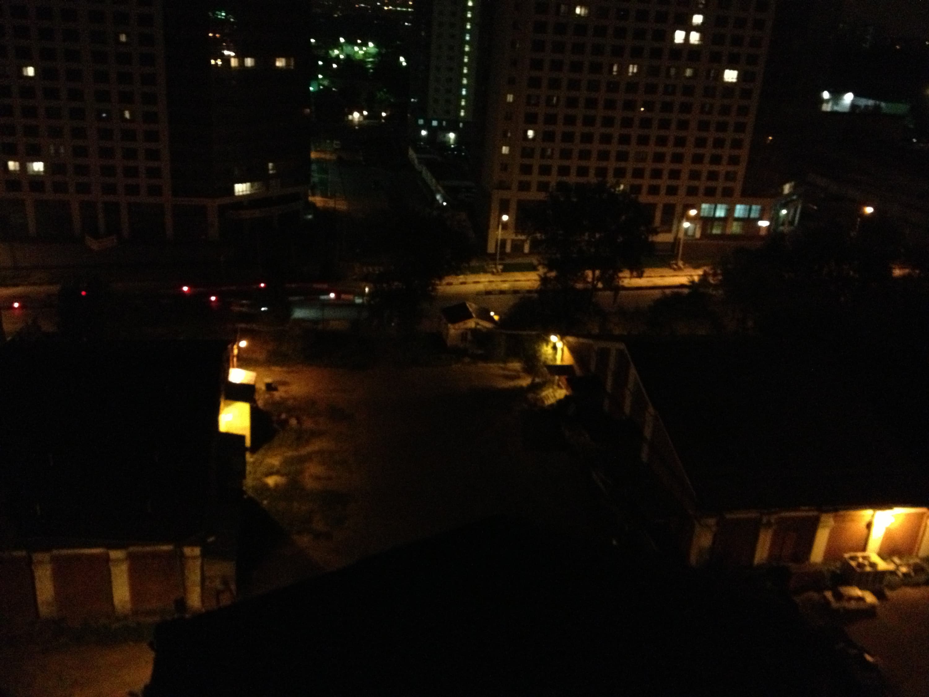 Третье испытание — ночная съемка. Панорама плохо освещенного района ночной Москвы, снятая сверху. И опять мы сделали несколько снимков, после чего выбрали лучшие. Приводим уменьшенные копии снимков, кадры в оригинальном разрешении доступны по щелчку.