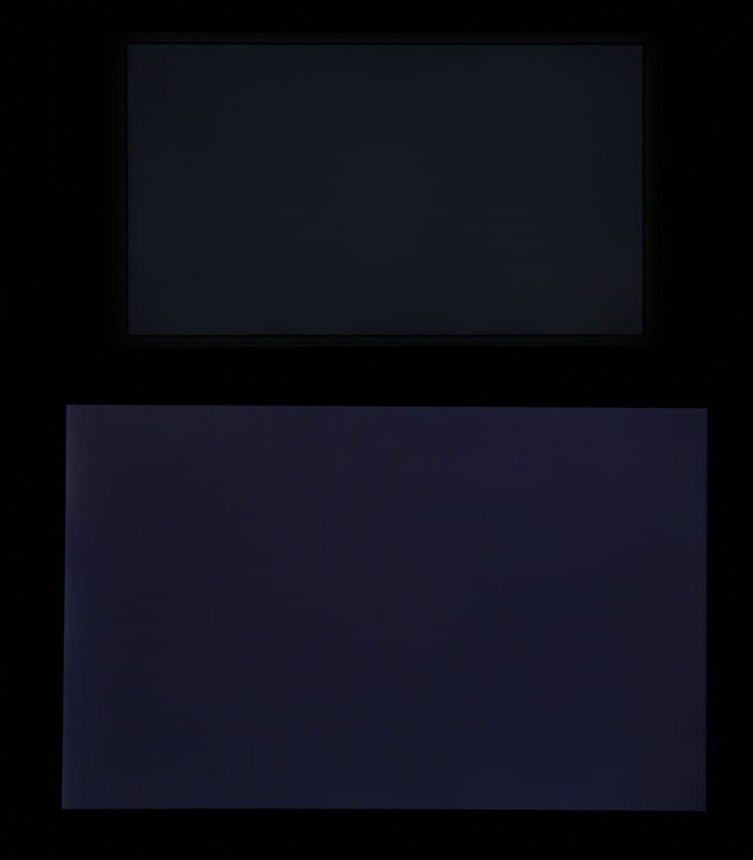 При перпендикулярном взгляде равномерность черного поля очень хорошая (но за границами экрана чуть просвечивает белая пластиковая фронтальная панель):