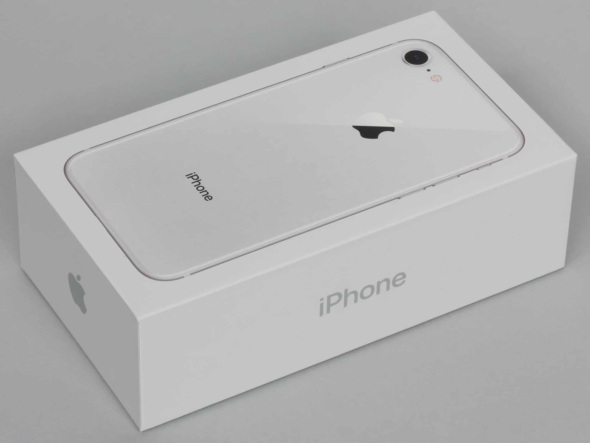 Дизайн коробки iPhone 8 аналогичен предыдущей модели, разве что тень на изображении смартфона призвана подчеркнуть главную фишку дизайна: тыльную поверхность из стекла.