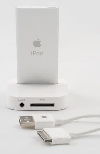 Как и прежде, в комплект поставки не входит док-станция (только адаптер) желающие могут приобрести ее отдельно. Стоит особенно обратить внимание, что, несмотря на большую схожесть плееров первого и второго поколения, док-станции у них разные (это вызвано различиями корпусов — бока у нового плеера скруглены), так что новый iPod nano не подойдет к доку для предыдущей модели и наоборот. Сзади кроме порта для подключения USB-кабеля находится аудиовыход, что порадует любителей стереосистем.