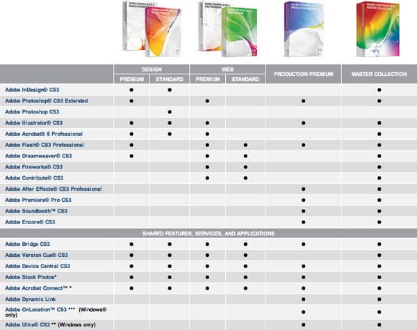 Adobe Creative Suite 3 будет поставляться в шести различных вариантах, каждый со своим набором приложений.