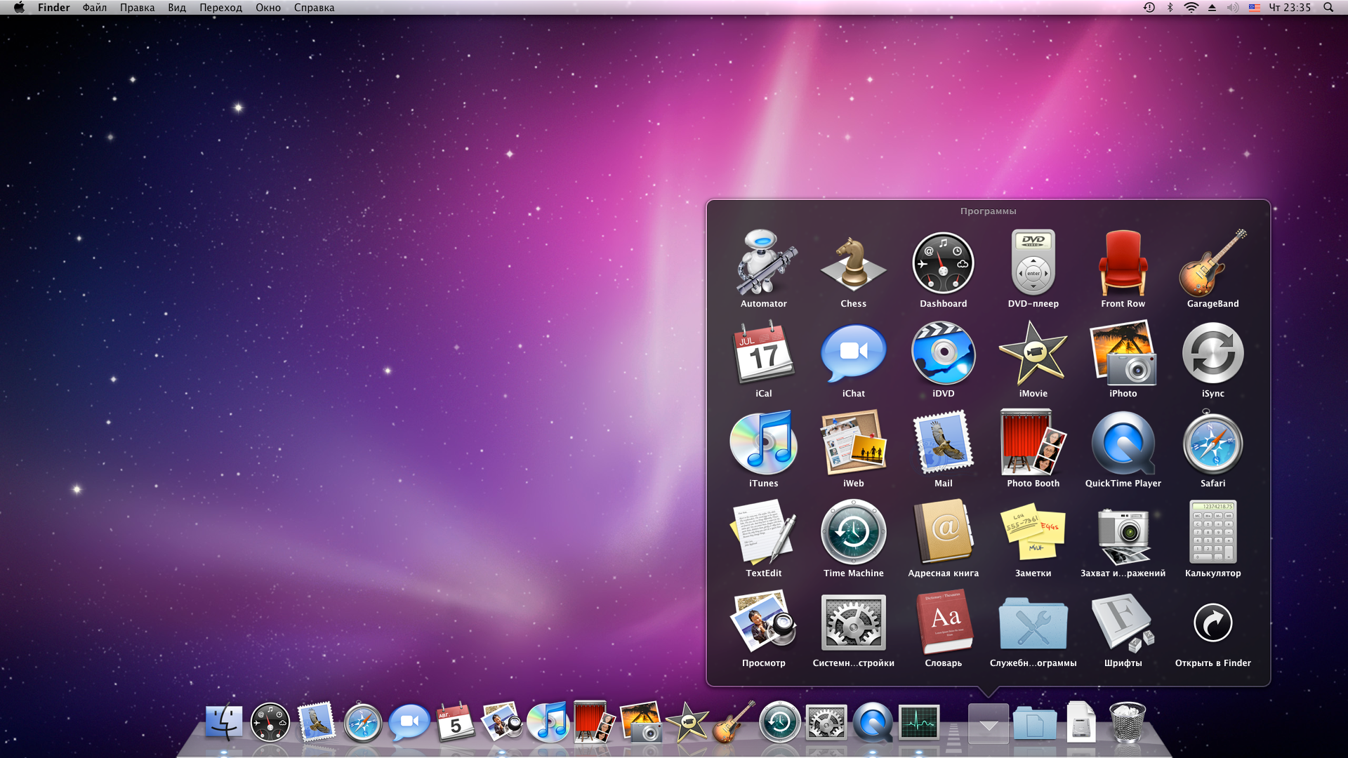 Традиционно не обошлось без минимального набора для офисно-организационной работы: текстовый редактор, адресная книга, календарь, программа синхронизации, калькулятор, заметки, словарь и Dashboard. Не забываем и Интернет — есть браузер Safari, чат, электронная почта и программа для создания сайтов iWeb.