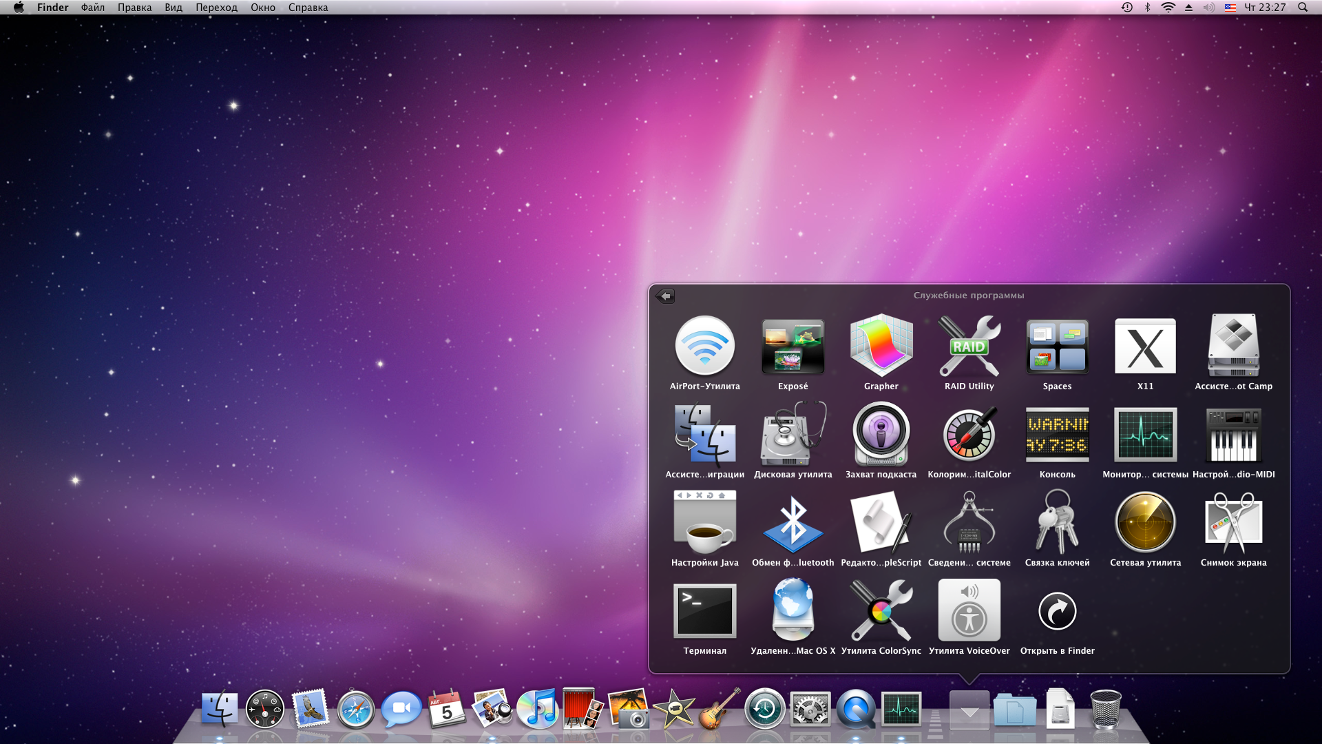 Наиболее интересными и полезными из множества системных программ, предназначенных для настройки, оптимизации и обслуживания системы, являются утилита резервного копирования Time Machine, модуль Boot Camp для обеспечения двойной загрузки ОС от Apple и Microsoft, ассистент переноса данных с других компьютеров Mac, программа управления жестким диском, утилита мониторинга системы, подробных сведения о компьютере и безопасное хранилище для паролей и ключей. Для особо подготовленных пользователей не забыли и про терминал с командной строкой.