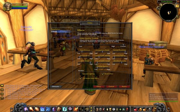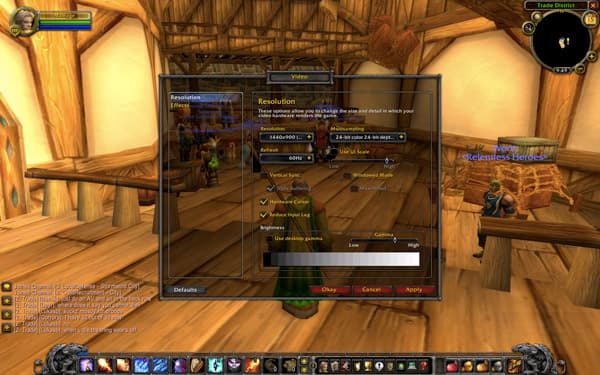 Большинство игр работает вполне комфортно, в качестве иллюстрации можно взять World of Warcraft, где при полном разрешении (1440×900) и следующих настройках графики и эффектов, частота обновления кадров, как правило, держится на уровне 70-100 fps: