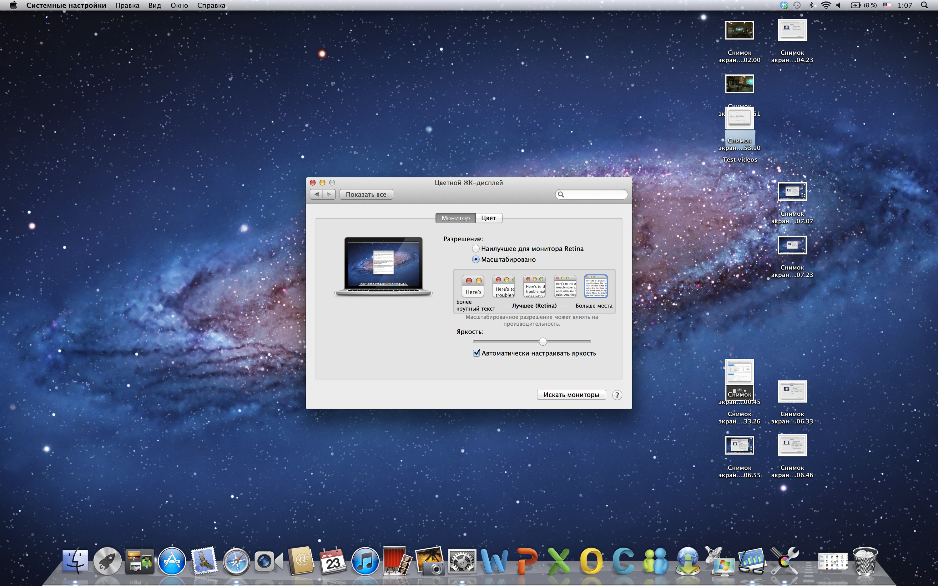 В принципе, описывать предустановленные приложения смысла нет, поскольку этот набор хорошо известен каждому пользователю компьютеров Apple и меняется с годами минимально. А о самой операционной системе у нас уже была статья, так что рекомендуем обратиться к ней. В данном же случае нас интересовало, в первую очередь, то, насколько хорошо ОС и ПО (как производства Apple, так и сторонних разработчиков) работают с разрешением Retina Display.