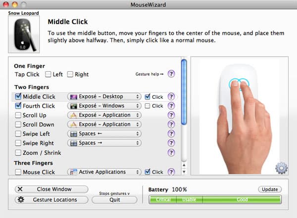 Эти программы наделяют Magic Mouse дополнительными возможностями, такими как средняя кнопка, запуск тех или иных приложений и т.п. И, на мой взгляд, от утилит типа MouseWizard зависит будущее Magic Mouse. Поскольку возможность настроить мышку под себя и, фактически, самому придумать способы общения с ней — это очень заманчиво. Образно говоря, подобные утилиты для Magic Mouse — как приложения App Store для iPhone. И без них устройство, конечно, функционально, однако, они переводят его на иной уровень.