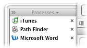 Processes. В этом режиме панель отображает список запущенных в настоящий момент приложений. И хотя эта панель во многом повторяет функции Dock, она предоставляет расширенные возможности управления приложениями — с ее помощью можно получить подробную информацию о работе приложения (пункт Report контекстного меню), перезапустить программу с правами администратора и др.