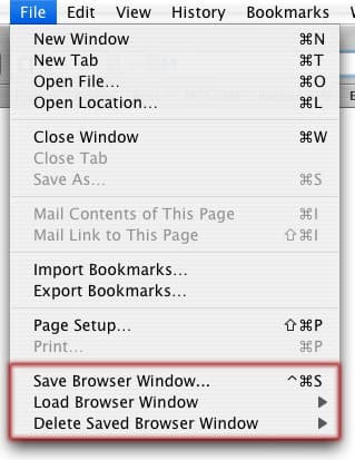 В том же разделе «Misc» настроек плагина вы можете выбрать функции «Save opened browser windows at quitting» и «Restore at start». Теперь при включении Safari все те страницы, которые были открыты вами на момент его предыдущего выключения, или какого-то сбоя, будут загружены снова. Помимо автоматической работы, вы можете вручную сохранить текущую сессию, и, естественно, восстановить любую из них. Достаточно выбрать пункт File —> Save Browser Window, или File —> Load Browser Window, соответственно.