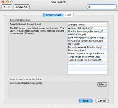Благо Apple сохранила возможности изменения формата скриншотов путем изменения настроек в системном файле, но каждый раз при создании скриншота вводить строку в Terminal — не самое приятное занятие. Для облегчения этого процесса можно использовать небольшую программу от Ego Systems. После ее установки в System Preferences появится дополнительный пункт «Screenshots», в котором вы сможете указать формат скриншотов и папку для их сохранения.