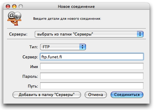 В открывшемся окне вводим все необходимые данные, и после соединения с выбранным сервером получаем в окне полноценный ftp-браузер.