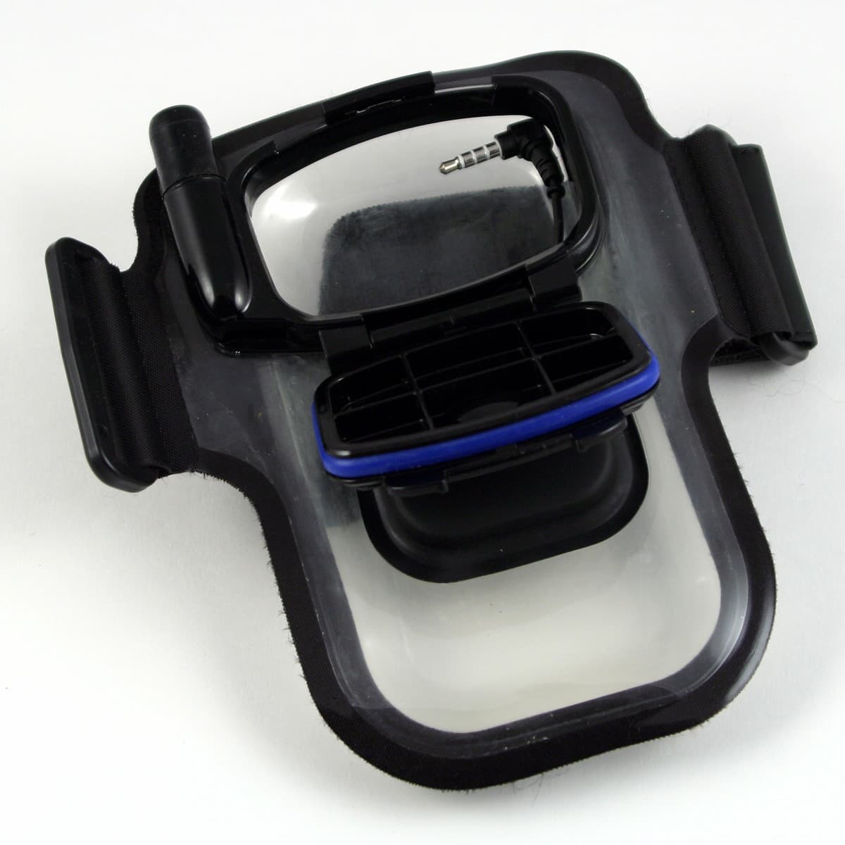 Компания H2O Audio предлагает собственные варианты водонепроницаемых чехлов, заметно отличающиеся по внешнему виду и возможностям от описанного выше. Для проверки мы использовали модель WB1-BK, остальные похожи на нее и отличаются в основном только размером. Основное позиционирование — для спортсменов, занимающихся водными видами спорта, которые не могут расстаться со своим плеером или телефоном даже под водой (предел установлен в 3,6 м). Кроме чехлов, нужно иметь и соответствующие наушники, о которых мы поговорим чуть позже.