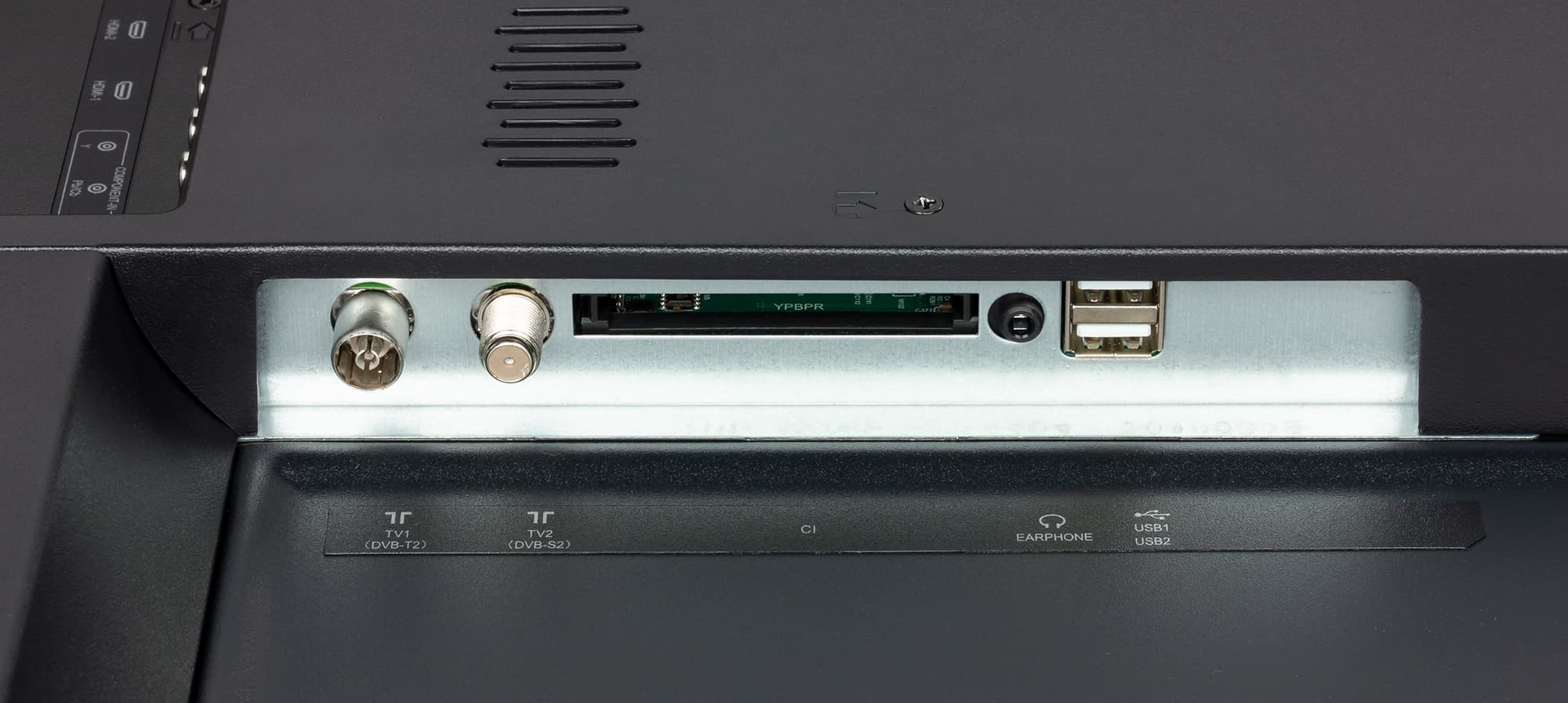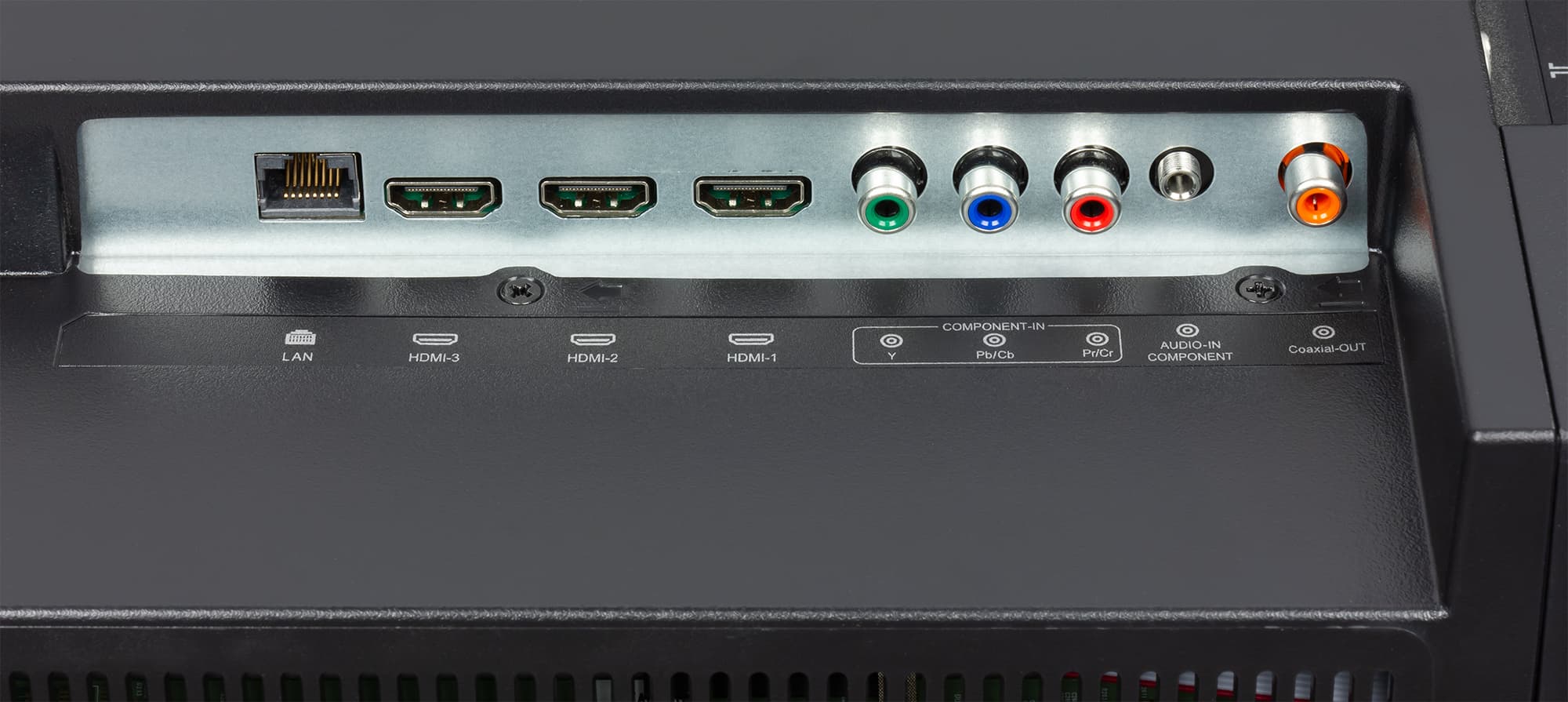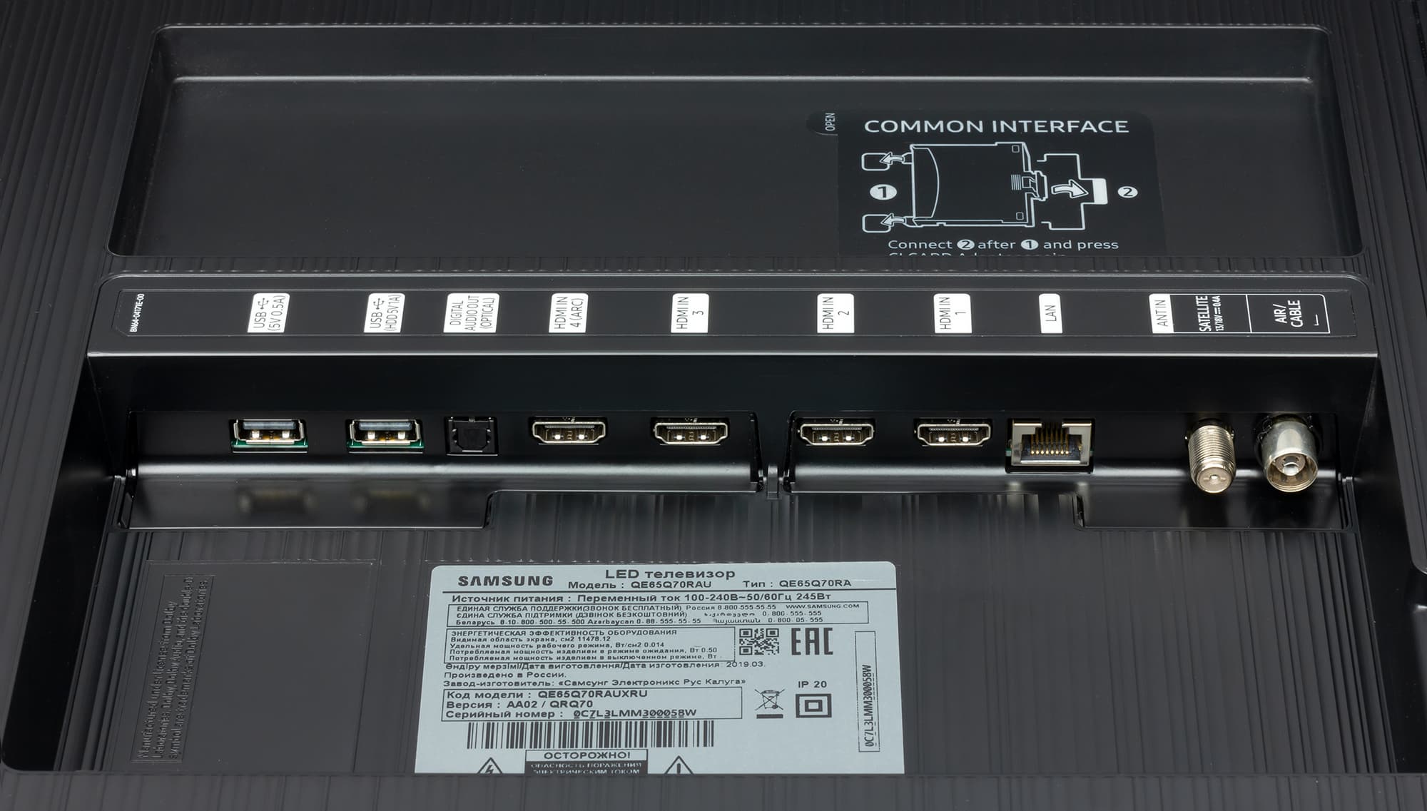 С проводными интерфейсами у всех четырех ТВ все более-менее похоже — 3-4 HDMI, 2-3 USB 2.0, цифровой аудиовыход, входы для спутникового и эфирного/кабельного ТВ, Ethernet на 100 Мбит/с. Аналоговые интерфейсы, кроме выхода на наушники, можно не учитывать. Перечислим особенности. У LG максимальное количество HDMI (4 шт, да еще и версии 2.1) и USB (3), есть выход на наушники, но ценность снижается из-за неудобного размещения ряда разъемов.