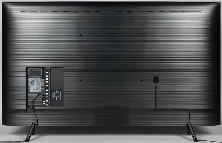 Оценка дизайна — это очень субъективно, но все же попробуем это сделать. Первое место именно за дизайн в данной четверке мы присудим телевизору LG. Он отличается очень тонким безрамочным экраном с очень узкой окантовкой. Если смотреть спереди, то экран как бы парит в воздухе. Вид сзади (для ТВ это не очень важно, но все же) слегка ухудшает массивный и далеко выдающийся противовес (который еще и очень существенно увеличивает массу телевизора). А с точки зрения удобства (то есть эргономики) в случае настенного монтажа к отрицательным моментам отнесем замкнутую нишу с направленными назад разъемами.