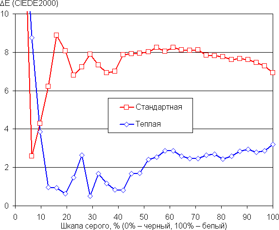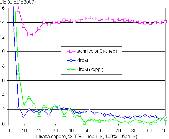 Качество цветопередачи мы оценим с точки зрения правильности отображения SDR-контента. Цветовой охват должен быть как можно ближе к sRGB, цветовая температура — к 6500 К, а отклонение от спектра абсолютно черного тела (параметр ΔE) в идеале должно быть ниже 3, или хотя бы ниже 10, при этом должна обеспечиваться хорошая стабильность этих параметров на большей части шкалы серого (за исключением самой ее темной части).