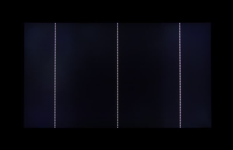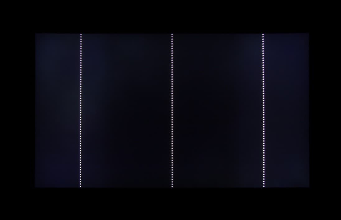 Рассматриваемая модель телевизора Samsung оснащена прямой многозонной светодиодной подсветкой. Это позволяет локально подсвечивать яркие участки изображения и затемнять темные, улучшая тем самым контраст изображения. Так как светодиодов подсветки во много раз меньше, чем пикселей в матрице, то каждый светодиод освещает область из десятков, если не сотен пикселей. Из-за этого на некоторых типах изображений можно увидеть артефакты в виде локальной засветки вокруг или около ярких объектов. Например, в случае тестового изображения с полосками из белых точек: